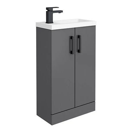 Apollo2 505mm Gloss Grey Compact Floor Standing Vanity Unit w. Matt Black Handles