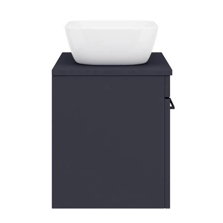 The contemporary matt blue Arezzo furniture range, with it’s clean lines this vanity unit is perfect for renewing the style in any bathroom. Supplied with a gloss white curved rectangular no tap hole counter top basin, it’s stylish modern design hides all unsightly pipework creating a neat modern look. A soft close drawer provides generous storage space for your toiletries, helping to keep your bathroom clutter free. Features a eye-catching and stylish matt blue finish with a on-trend modern matt black square bar handle. This matt blue vanity and counter top basin will look especially smart with an Arezzo sleek wall mounted tap to really emphasise the contemporary look.