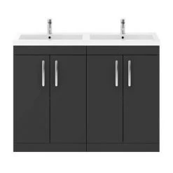 The Bayswater Stiffkey Blue 1200mm 4 Door Vanity Unit and Grey Marble Double Bowl Basin Top will create a unique centre piece to any classic themed bathroom. It’s ample storage space provides plenty of room for bathroom essentials while the soft close doors limits the daily wear and tear and provides a quieter closing action. Made from high quality materials, it features side panelling for a classic look, elegant chrome knobs and a Bayswater logo plate that beautifully finishes the unit. The stunning grey marble top basin co-ordinates beautifully with the classic white china basin.