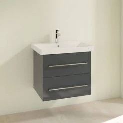 Villeroy and Boch Avento Crystal Grey 600mm Wall Hung 2-Drawer Vanity Unit