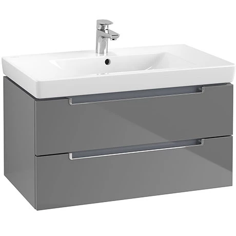 Subway 2.0 bathroom furniture by Villeroy & Boch brings diversity to the cosy bathroom. This Glossy Grey Wall Hung 2-Drawer Vanity Unit has generous storage space thanks to clever interior arrangement and its shock-absorbing, soft-closing drawers that slows down the drawer and automatically closes it, slowly and silently. With a range of colours, the modern design of the bathroom furniture by Subway 2.0 gives every bathroom a fresh and natural look.